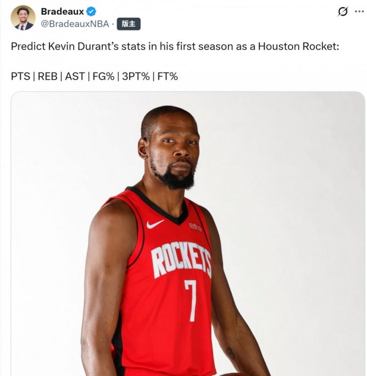 2025-10-03 00:09:57火记发问:预测下杜兰特在火箭第一个赛季的场均数据吧