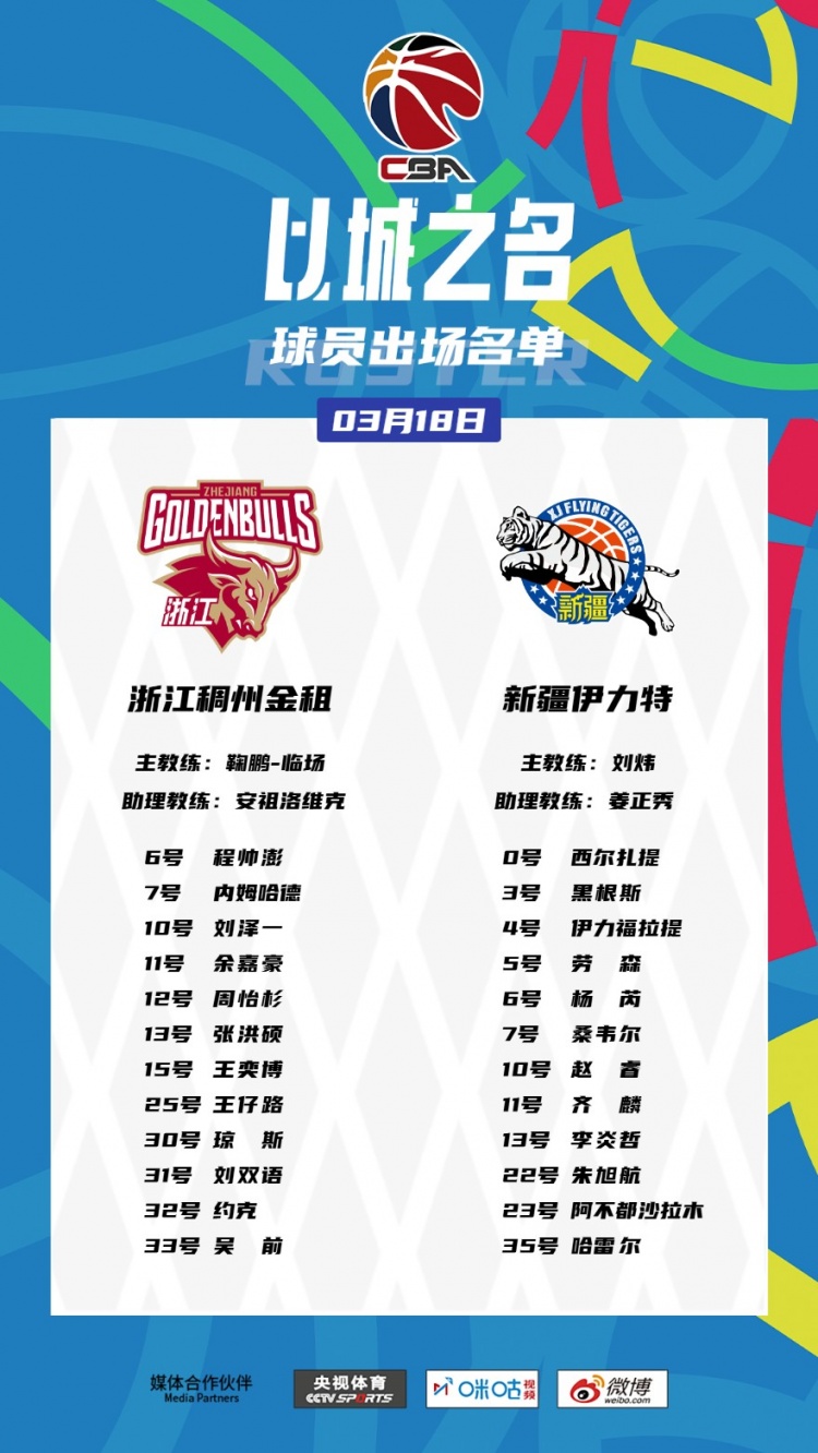 2025-03-18 20:20:31新疆VS浙江大名单:哈雷尔“战旧主” 赵睿齐麟阿不都在列