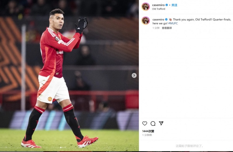 2025-03-14 12:01:17重返巅峰!卡塞米罗社媒:感谢老特拉福德的掌声,八强战我们来了