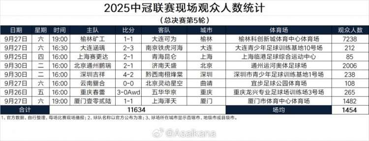 2025-10-03 00:04:382025中冠联赛现场观众人数统计(总决赛第5轮)